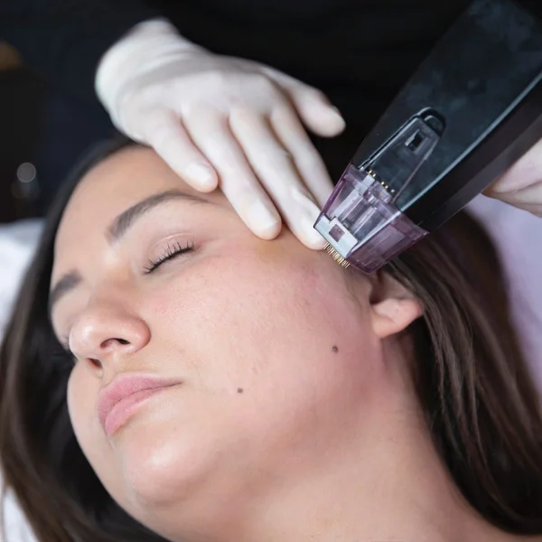 This precision device stimulates collagen and elastin production through micro-injuries, improving fine lines, texture, and overall firmness.