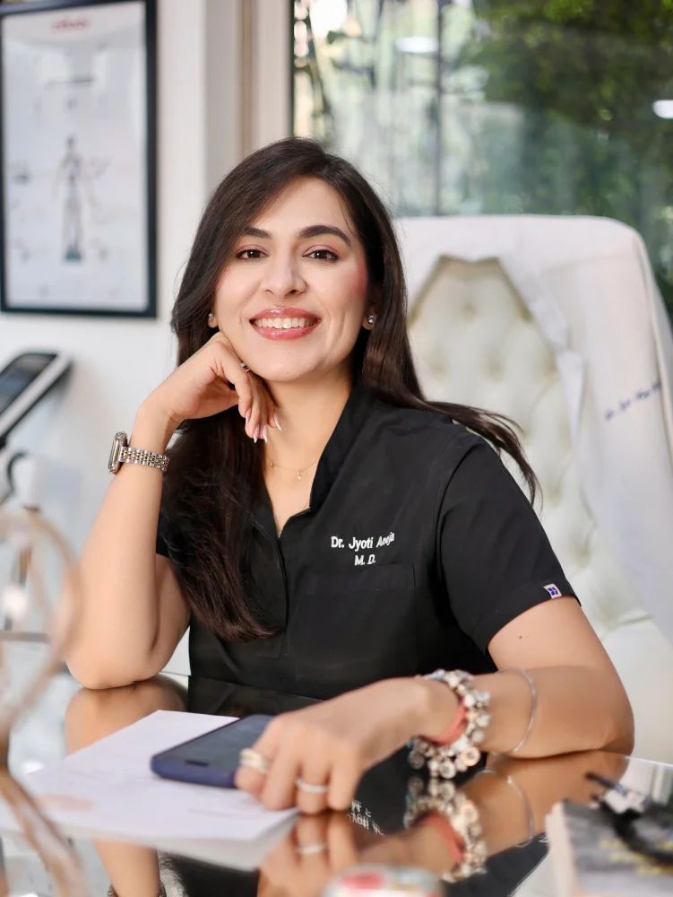 Dr. Jyoti Aneja is one of India’s leading dermatologists in regenerative aesthetics, hair science and holistic skin wellness. With over 15 years of experience and global training under the finest names in the aesthetic world she has built a trusted reputation for subtle, natural and long-lasting results.